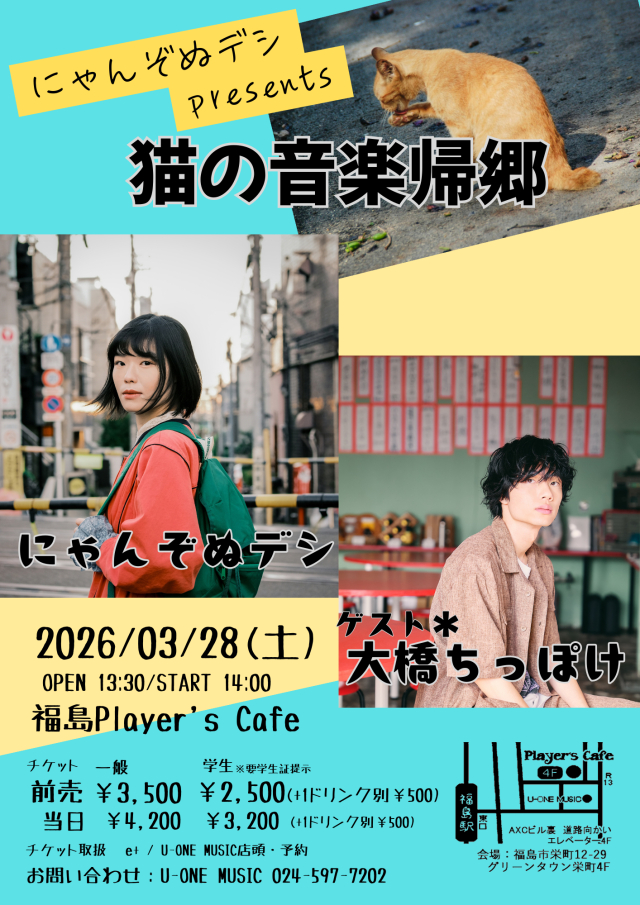 2026.3.28(土) にゃんぞぬデシpresents 猫の音楽帰郷